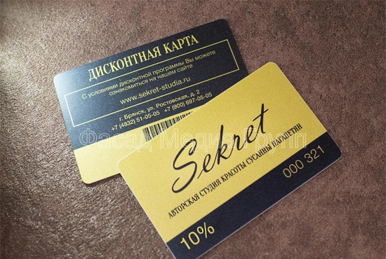 Рекламное агентство «Фасад Медиа Групп» предлагает гибкие условия разработки дизайн-проекта и изготовления пластиковых карт и подарочных сертификатов в Советске и Калининградской области, выгодные цены.