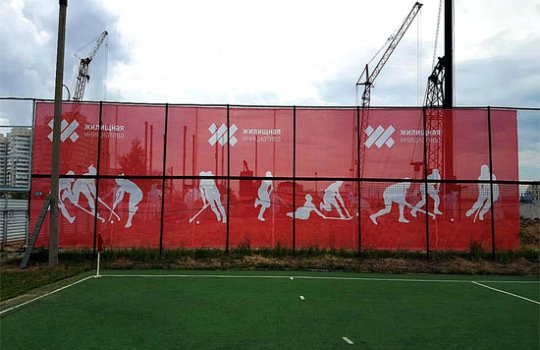 Печать на строительной сетке на фото выше:
