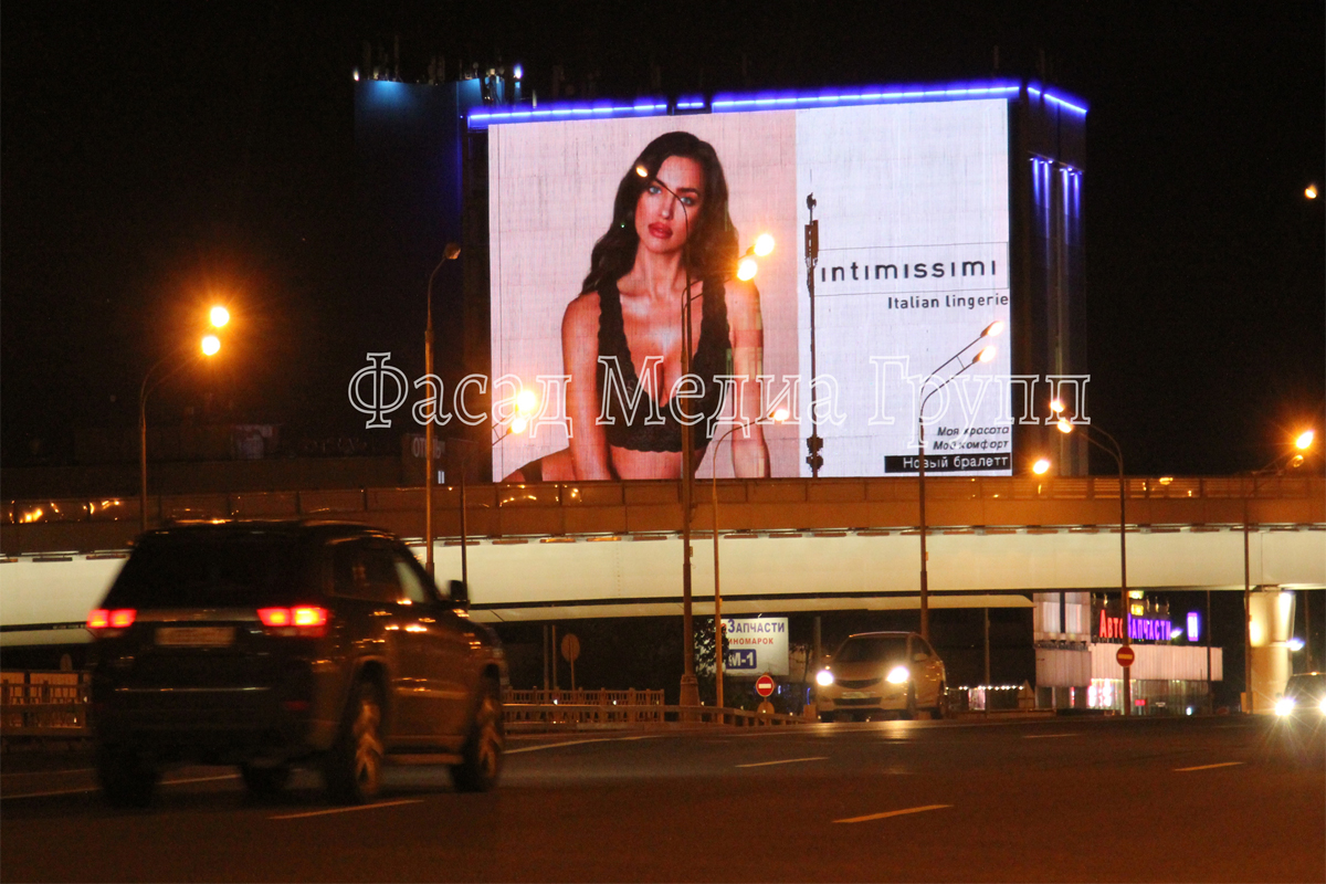 Реклама на медиафасаде ш. Можайское на фото выше