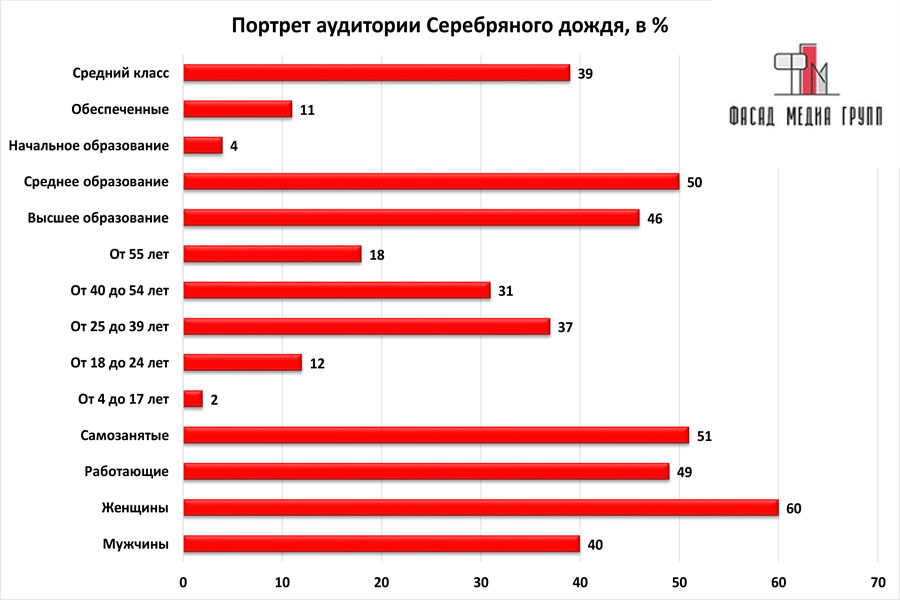 Благодаря качественному, сбалансированному контенту аудитория «Серебряного Дождя» многочисленна и разнообразна.