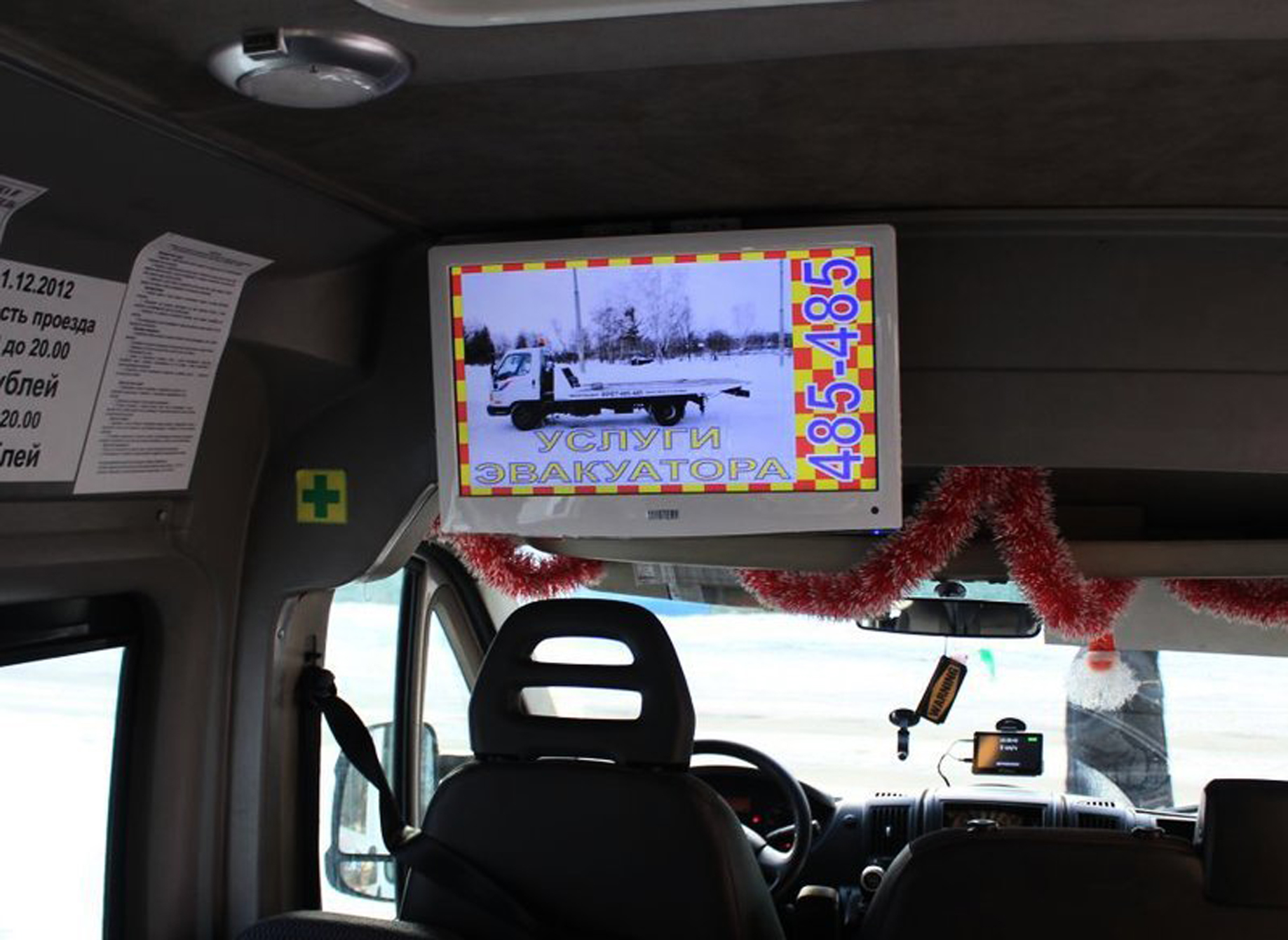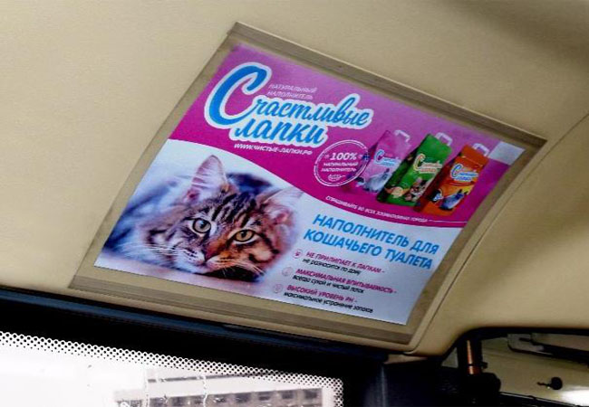 Реклама на мониторах в маршрутке на фото выше