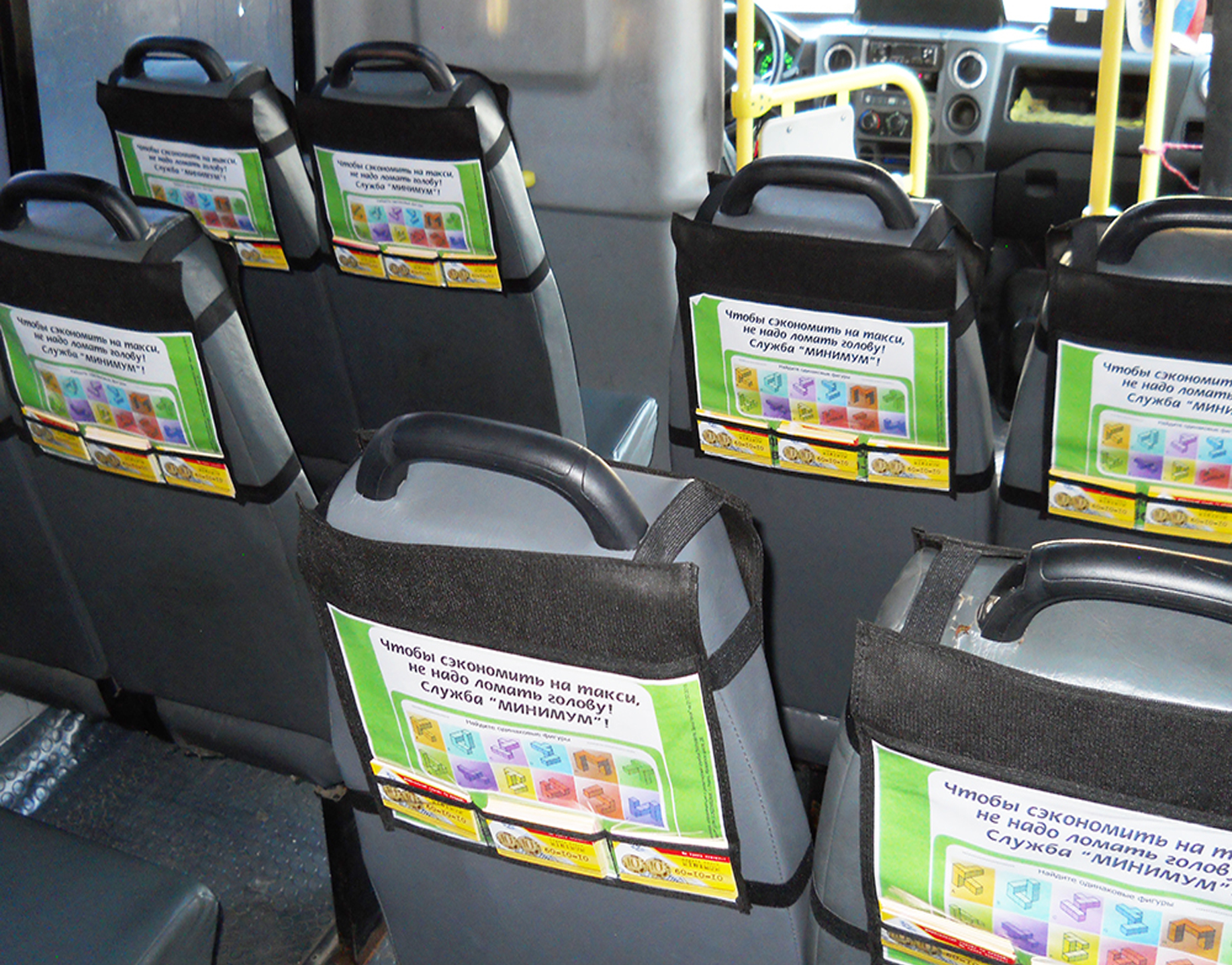 Реклама на подголовниках в маршрутке на фото выше