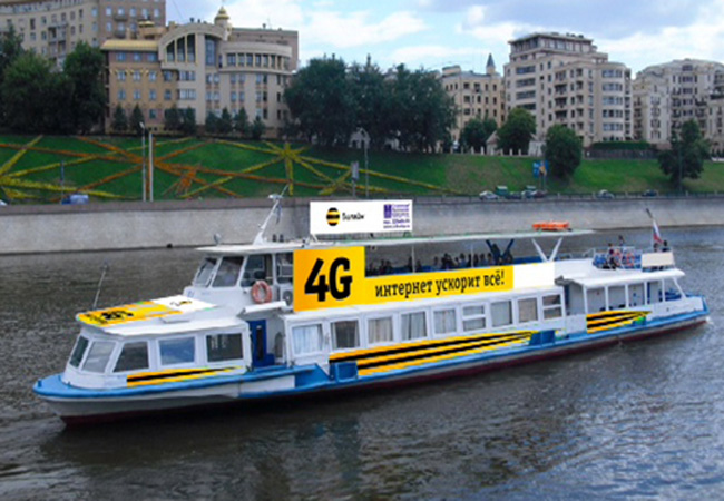 Приводим примеры монтажа рекламы на теплоходах: