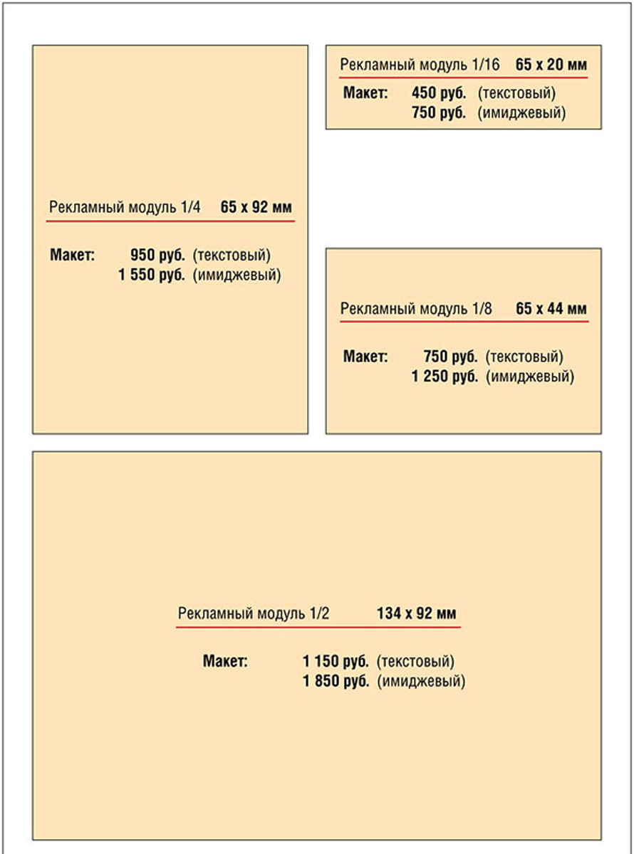 Приводим примерные форматы размещения рекламы в газетах: