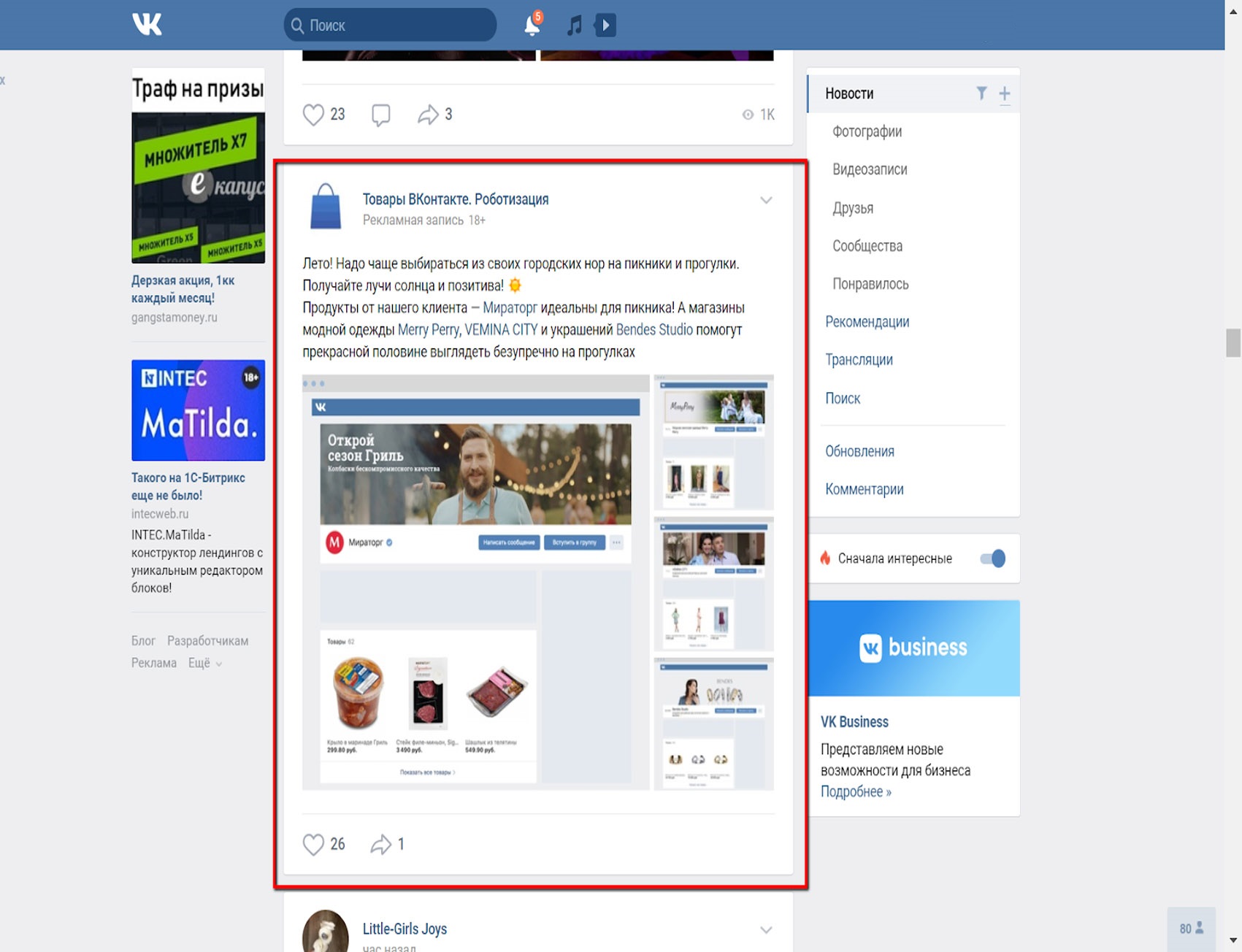 Эффективность рекламы в ВКонтакте в Советске