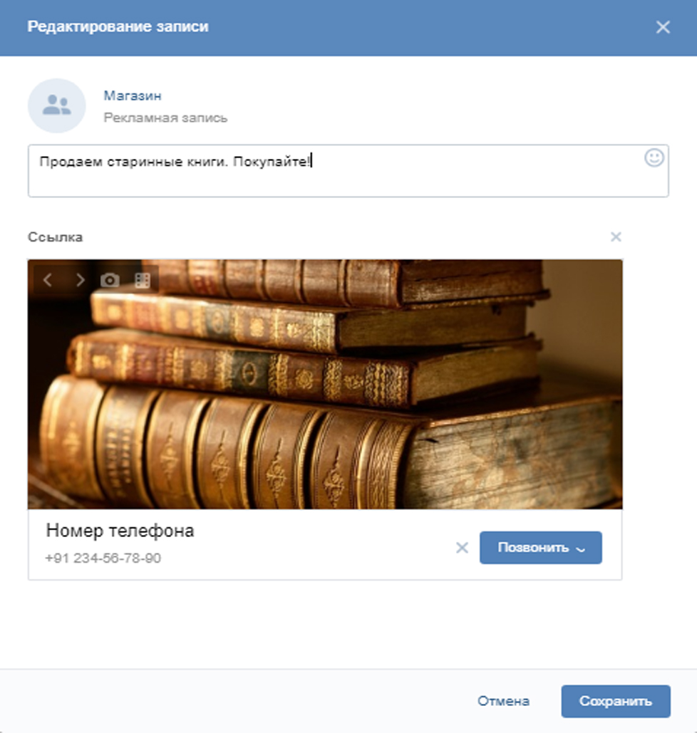 2) Запись с кнопкой ВКонтакте. Призыв к действию – вступить, купить, перейти и другие.