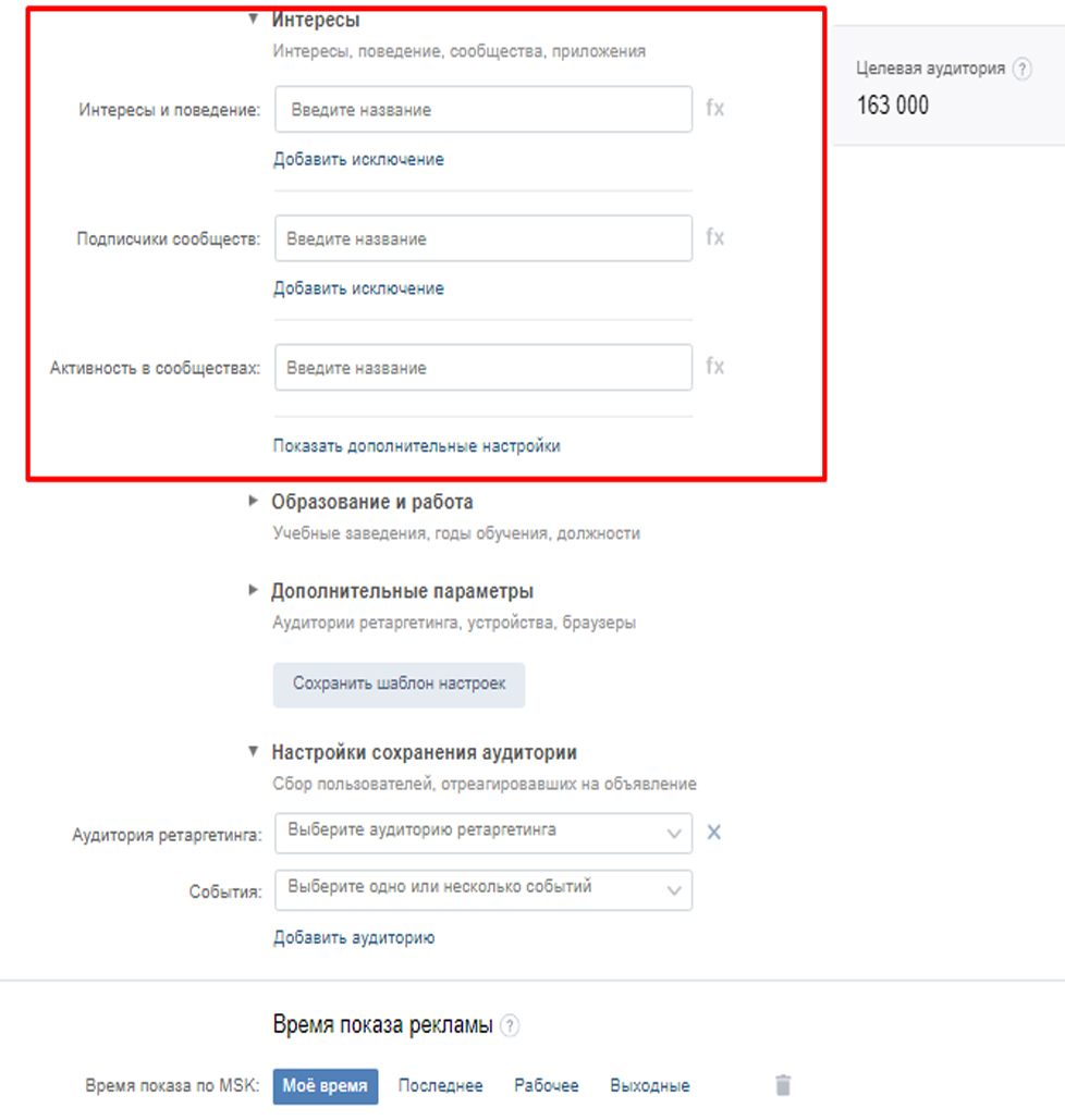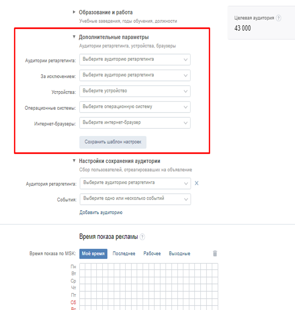 Помимо указанных рекламных форматов ВКонтакте предлагает выбрать дополнительные виды рекламы: