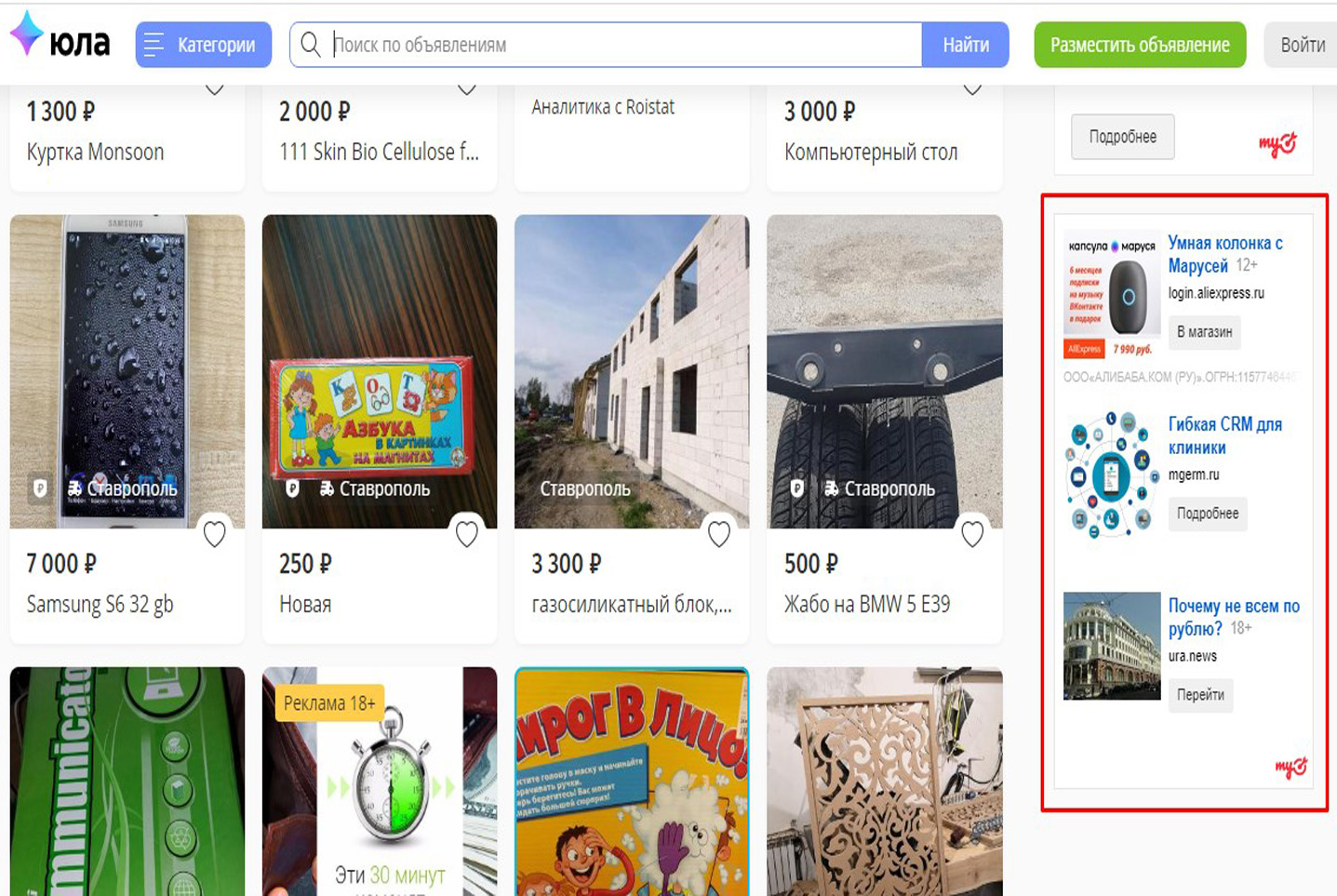 Какие виды рекламы в Яндексе носят массовый характер в Советске?