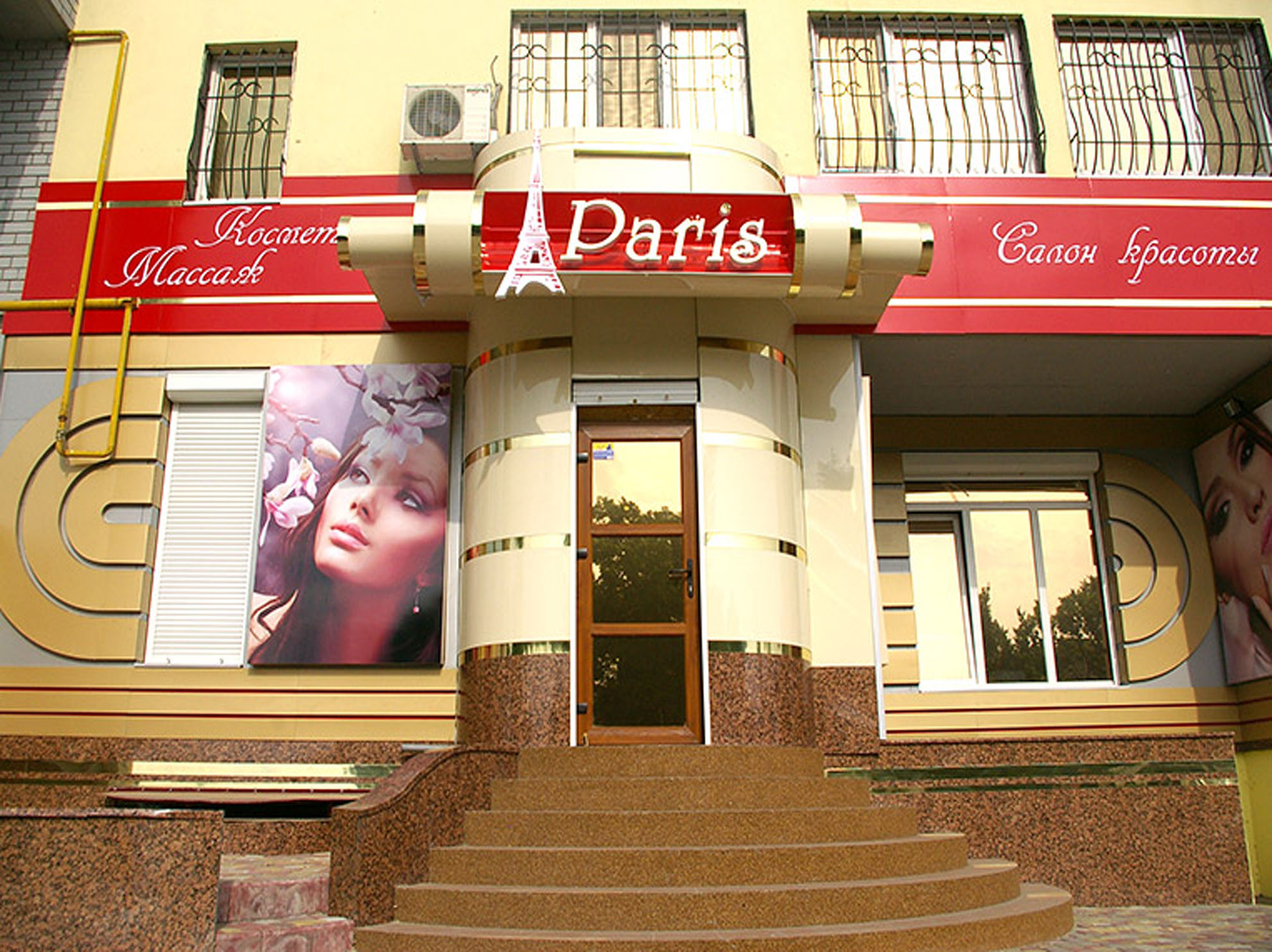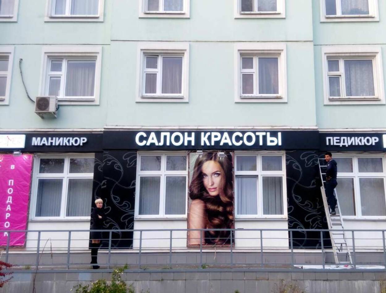 Пример рекламного баннера на здании салона красоты: