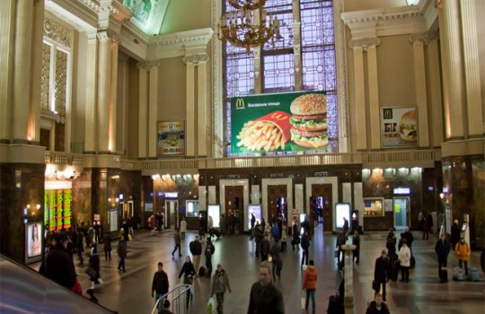 Пример цифровой рекламы на Ж/Д вокзале: