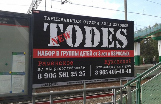 Пример рекламы на Ж/Д платформе: